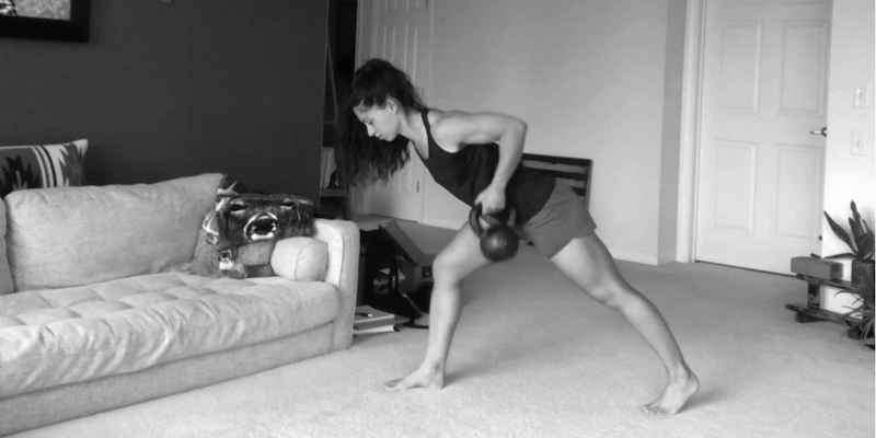 This single weight workout will target your muscular and aerobic systems. Whether you are using a kettlebell or dumbbell, this complex will increase your heart rate and build muscle. Complete all the reps on the left before switching to the right side.